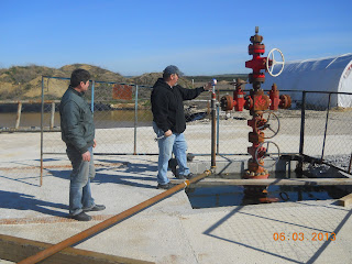 After that we went to the D locations so Cam could swap pressure gauges on a couple of wells. The challenge here is to take the gauge off and put it on again without dropping it, the wrench or yourself into the water filled pit* around the well head. (*It's about 8-10 feet deep and may contain frogs - shudder!)